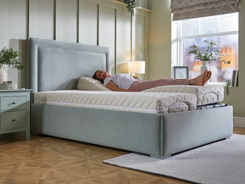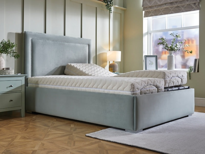 The uniquely styled headboard can be finished in a wide range of colours and patterns – matching or contrasting, ask at your home demonstration for details of the fabrics that are available for The Genoa adjustable bed.
